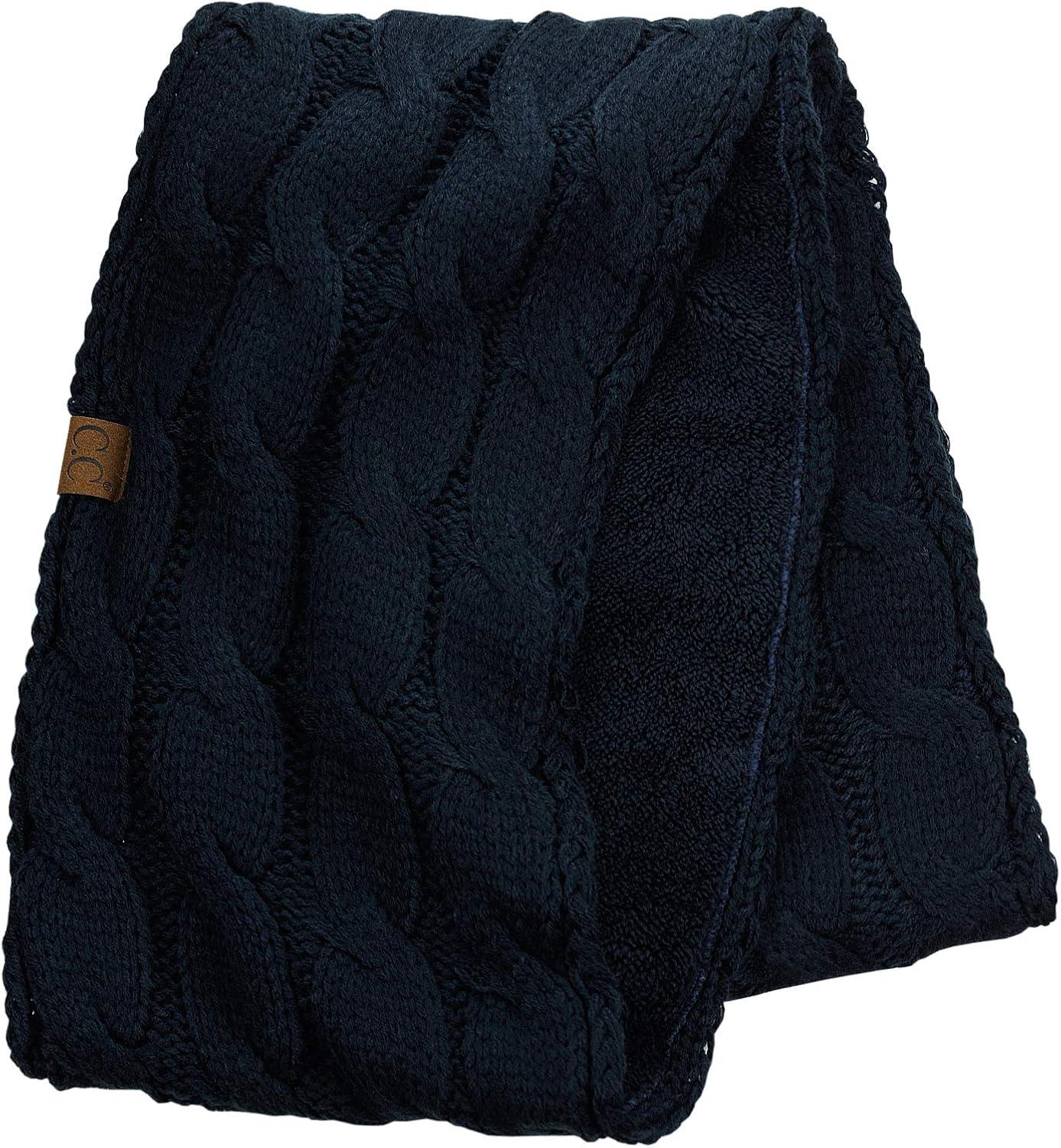 C.C Women’s Winter Cable Knit Sherpa Lined Warm Infinity Pullover Scarf(Navy)
