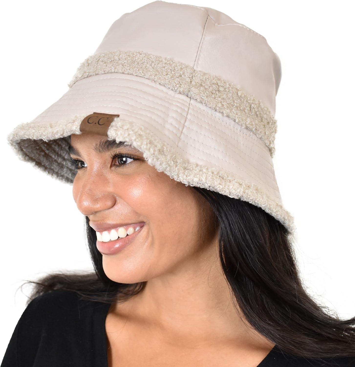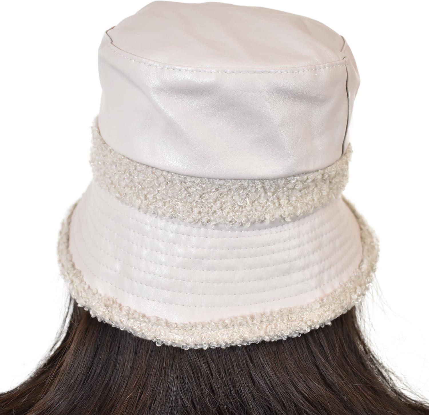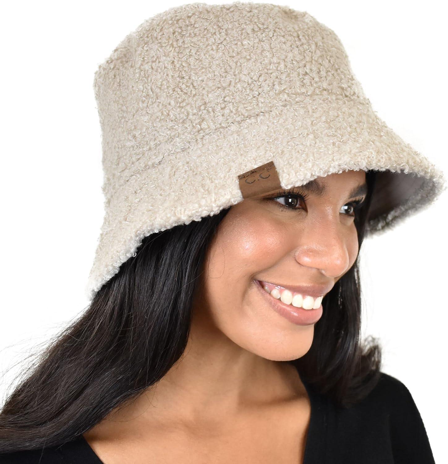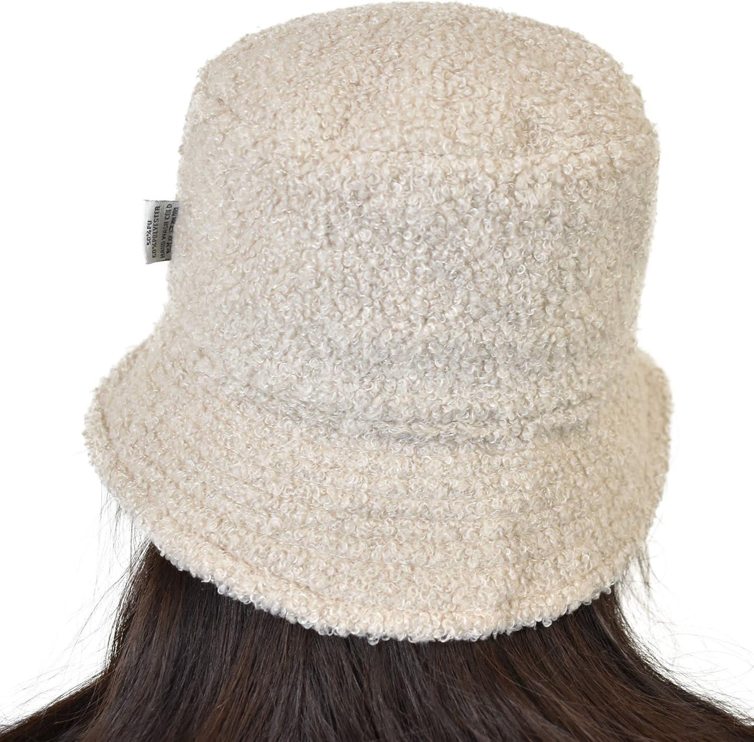 C.C Women's Winter Faux Fur Teddy Style Reversible Fisherman Bucket Hat(Dove)