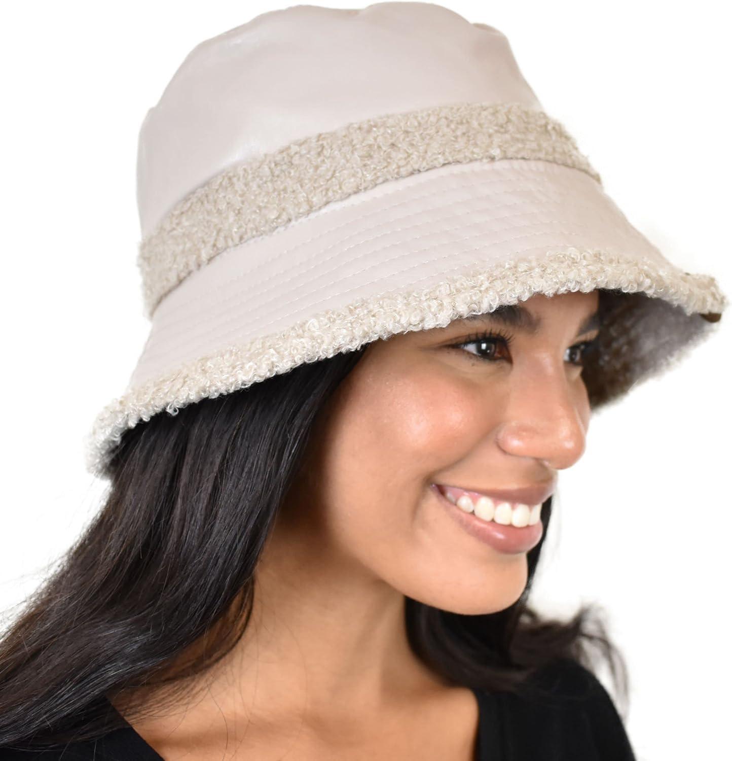C.C Women’s Winter Faux Fur Teddy Style Reversible Fisherman Bucket Hat(Dove)