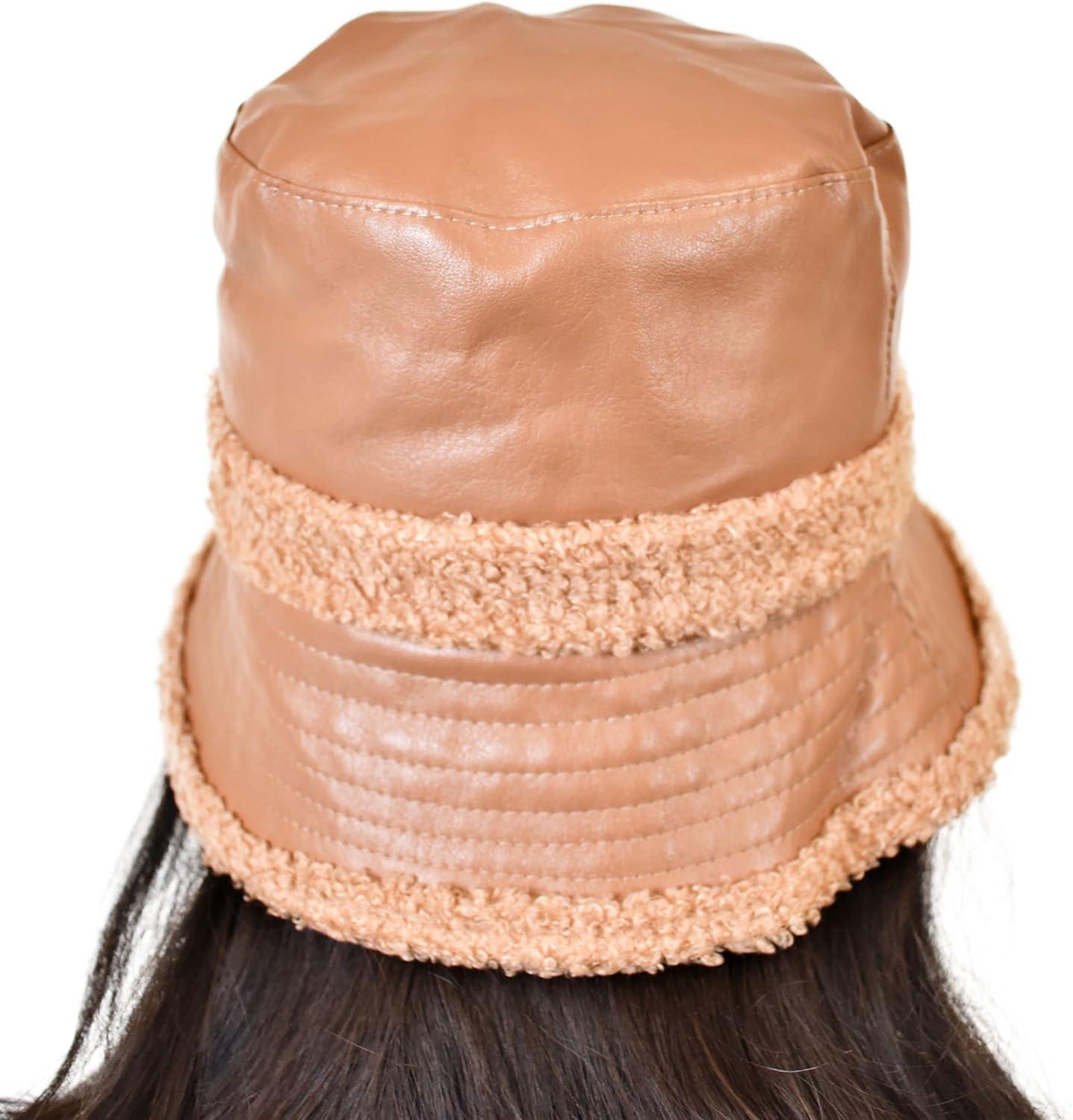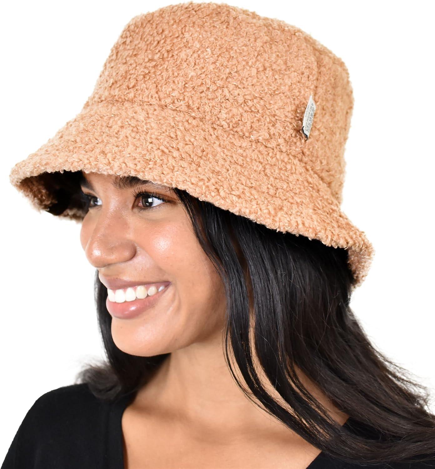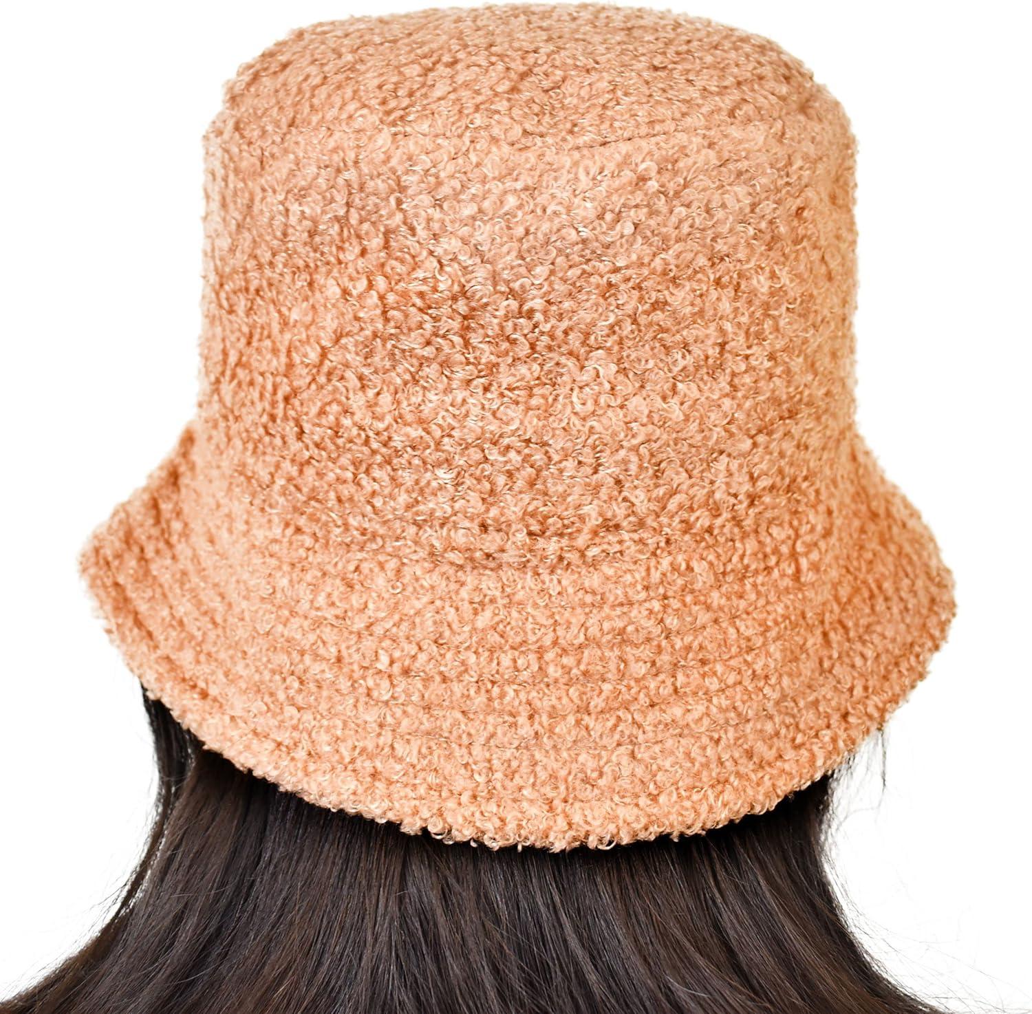 C.C Women’s Winter Faux Fur Teddy Style Reversible Fisherman Bucket Hat(Toast Almond)