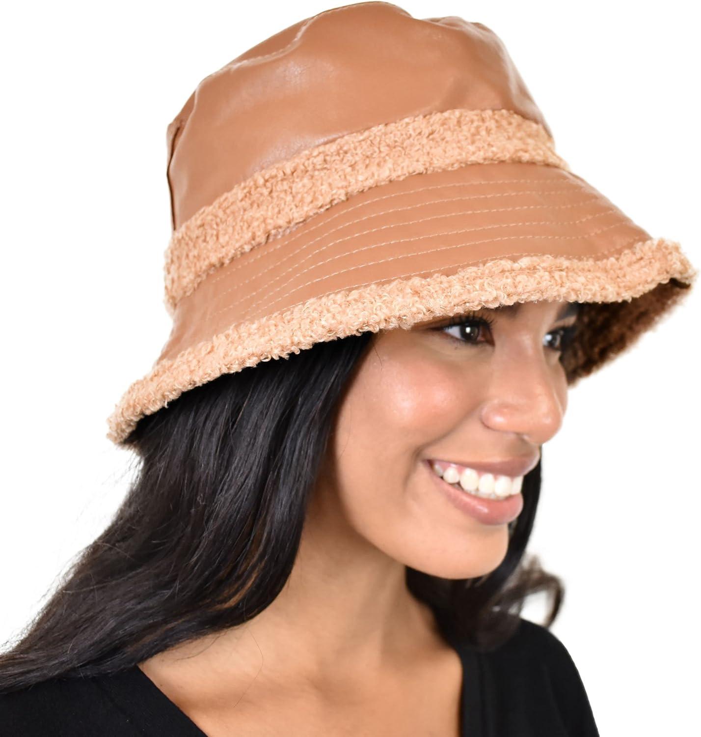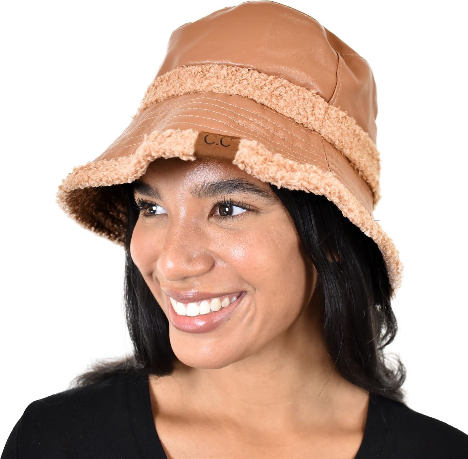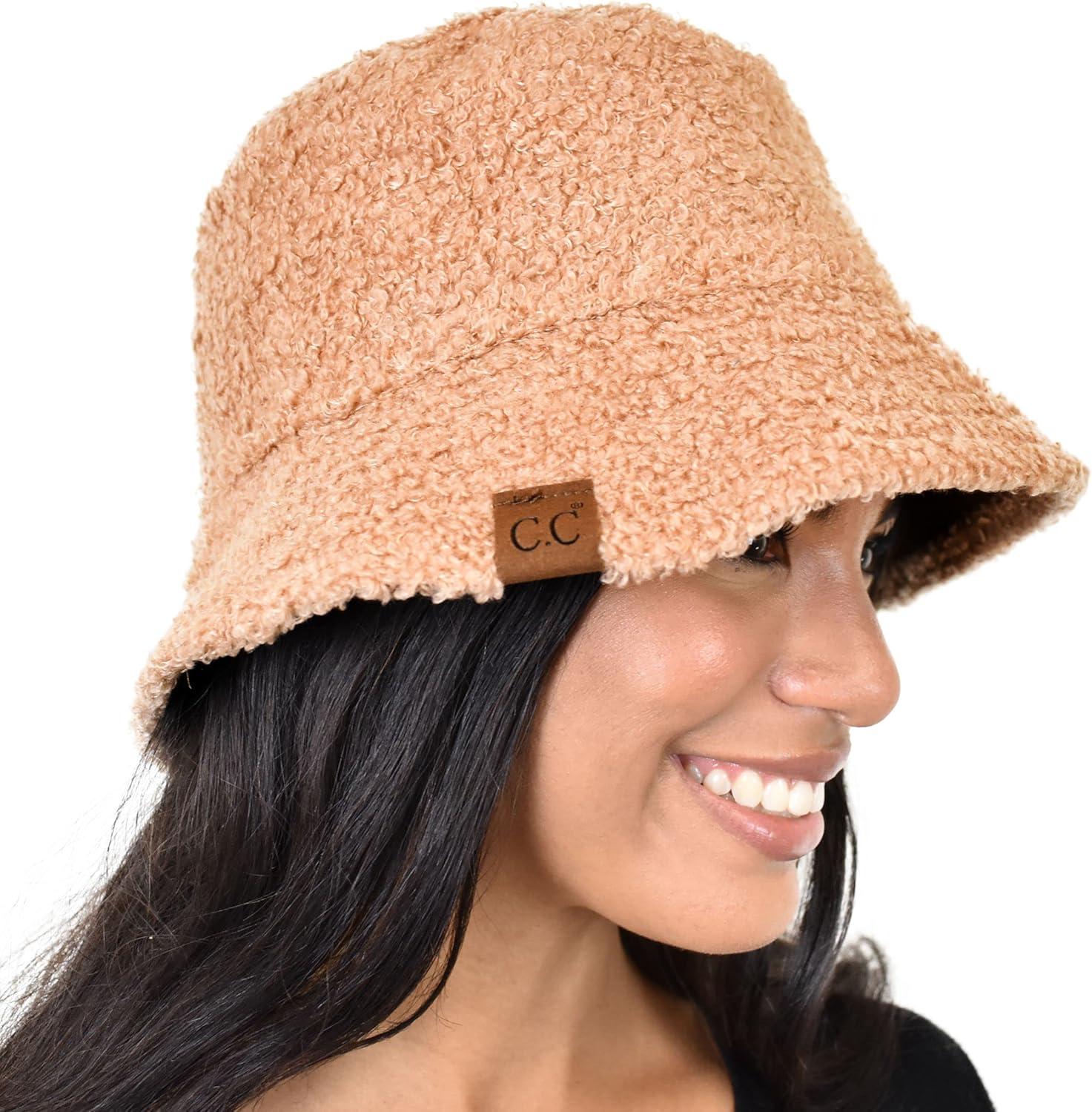 C.C Women’s Winter Faux Fur Teddy Style Reversible Fisherman Bucket Hat(Toast Almond)