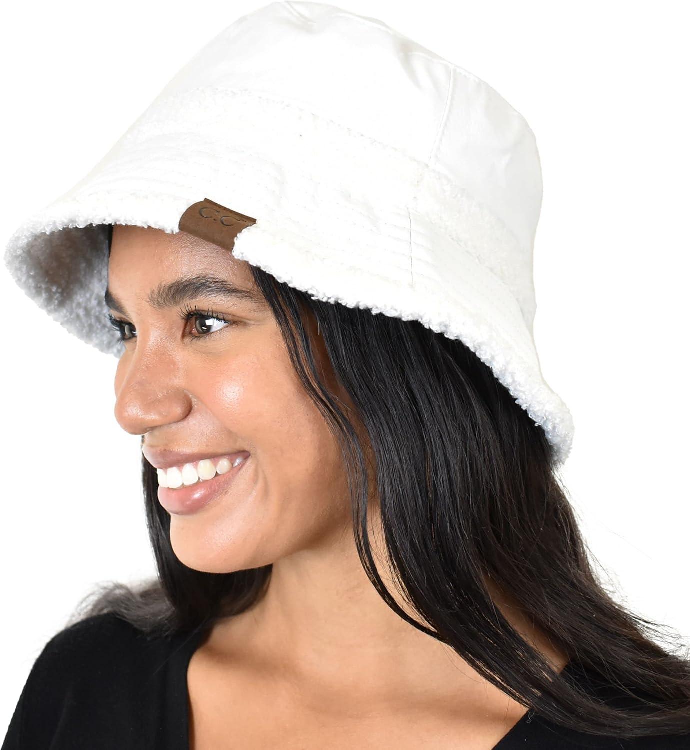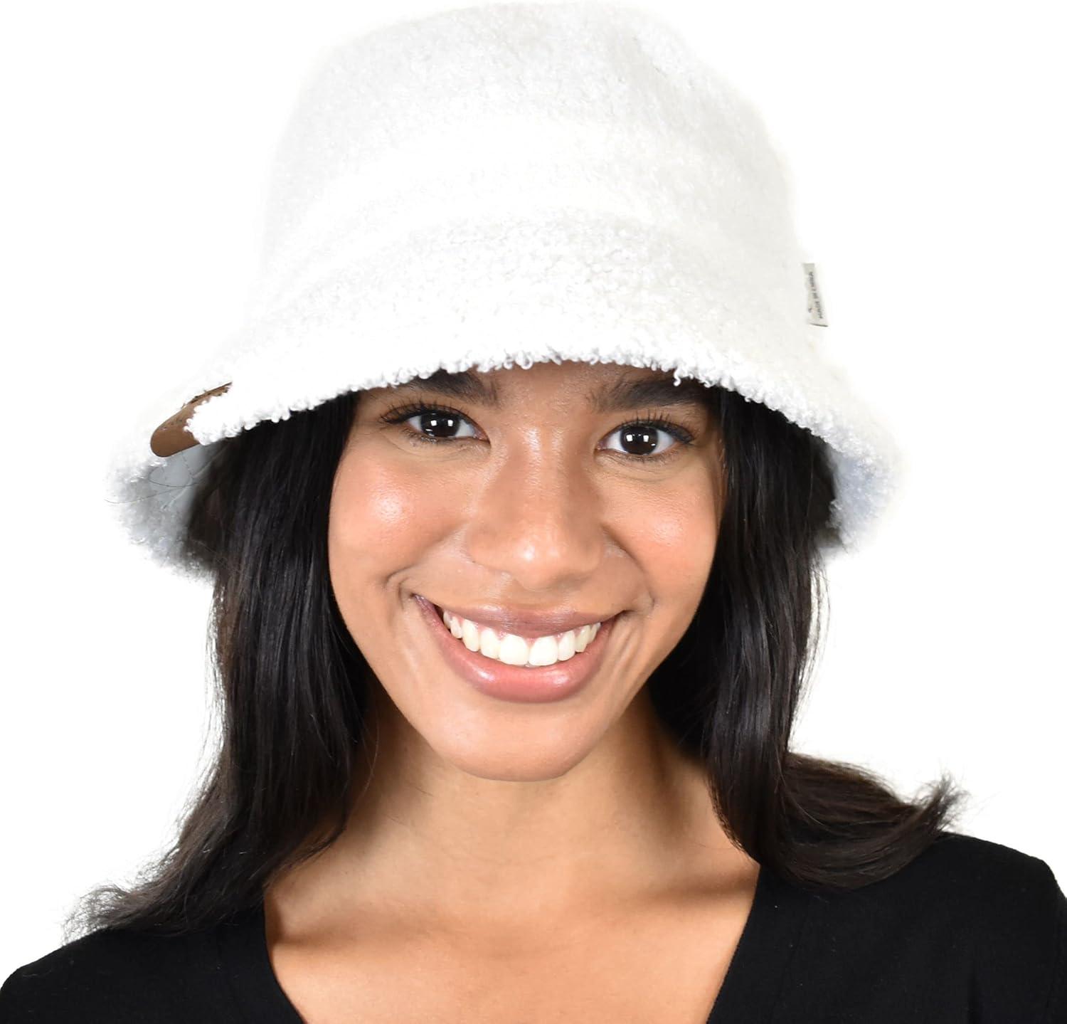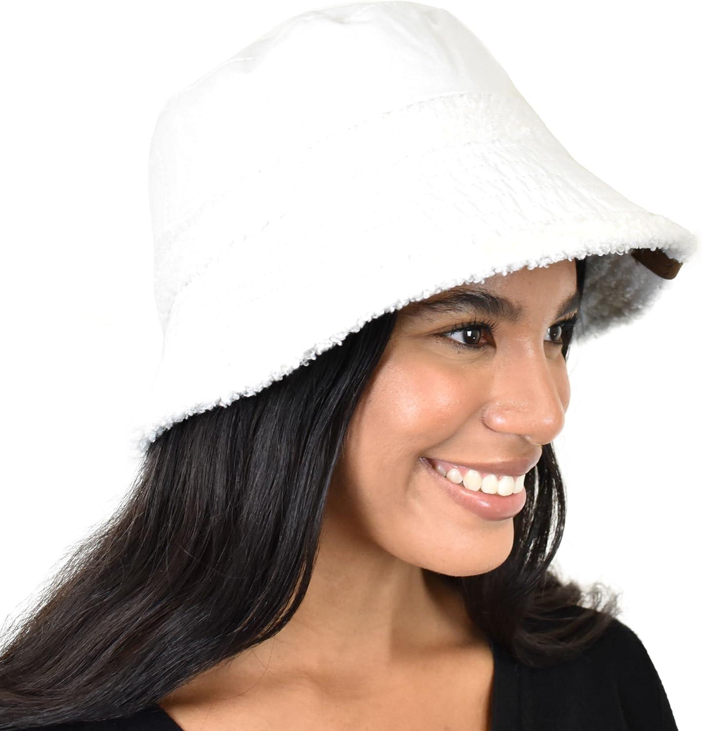 imageCC Womens Winter Faux Fur Teddy Style Reversible Fisherman Bucket HatWhite
