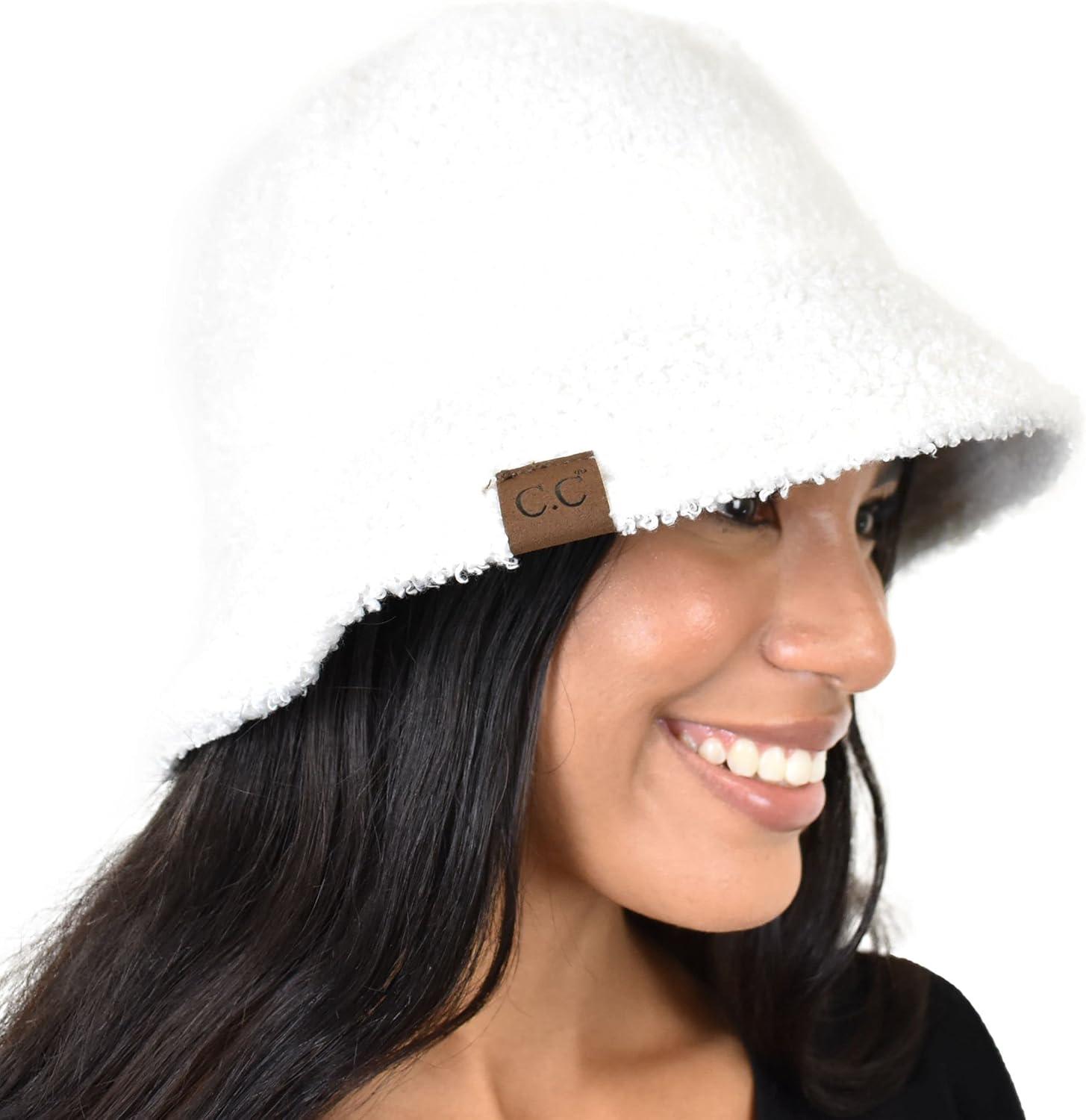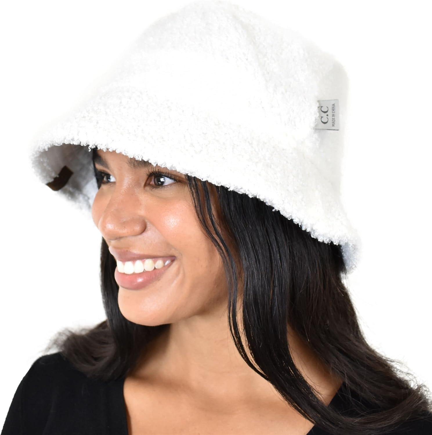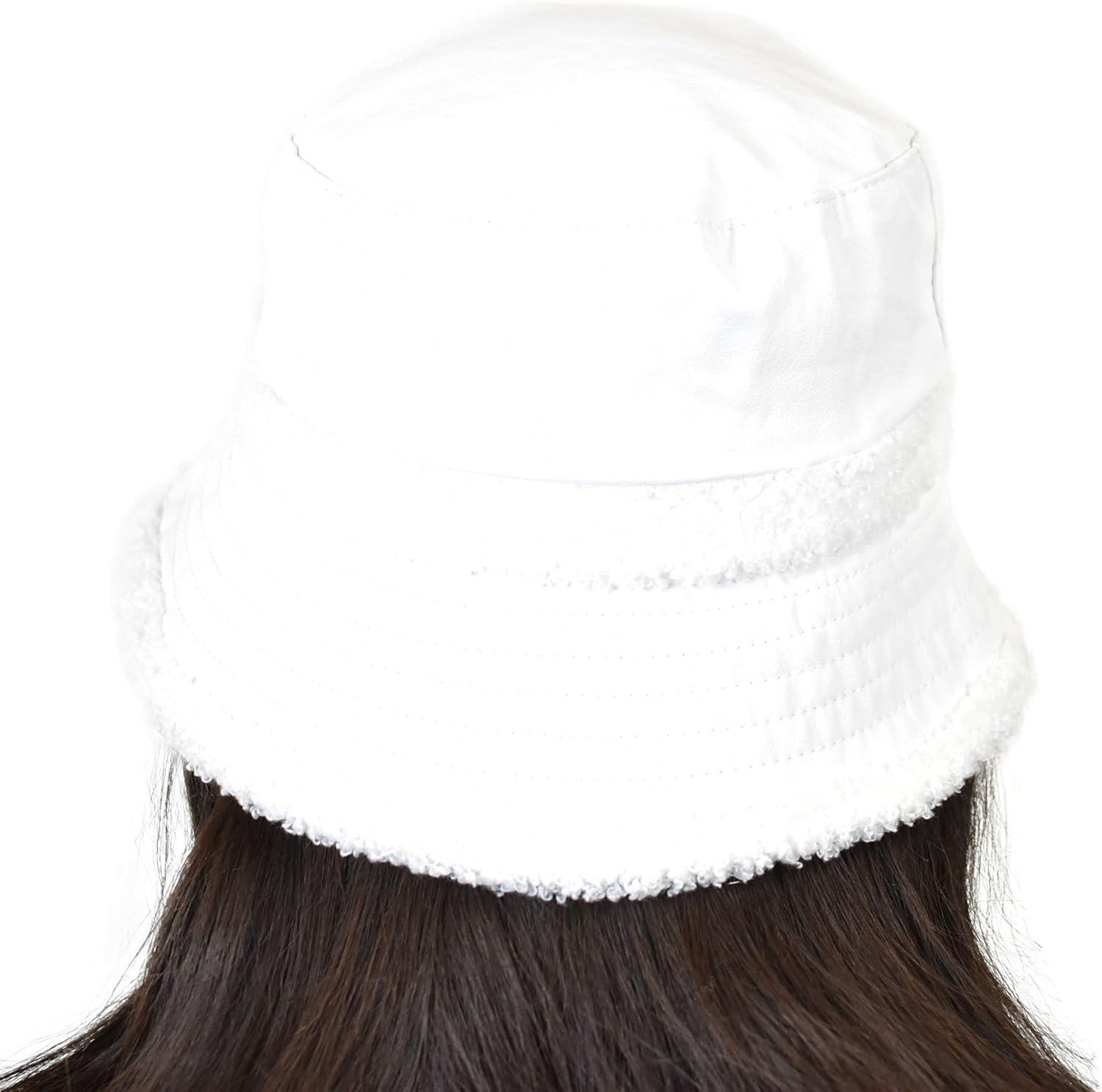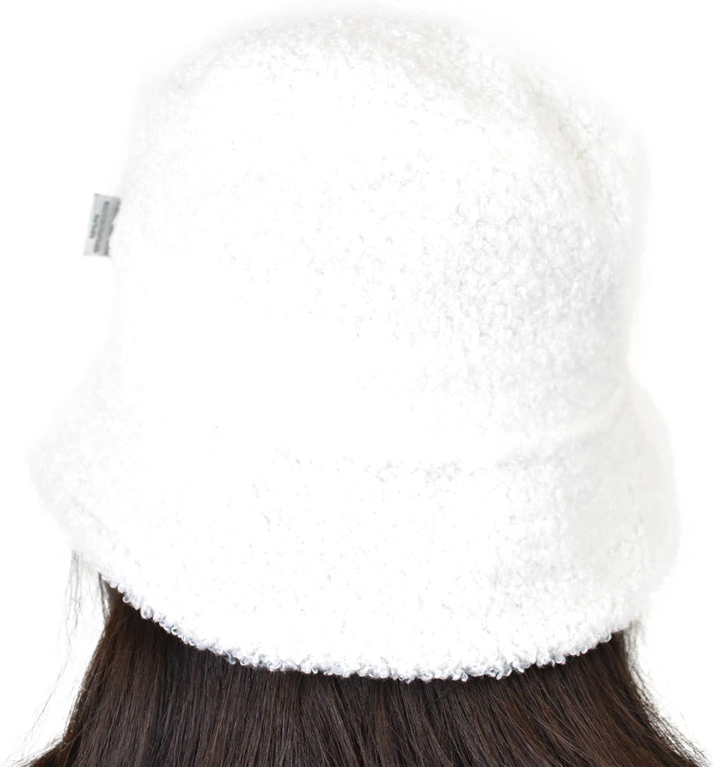 C.C Women's Winter Faux Fur Teddy Style Reversible Fisherman Bucket Hat(White)