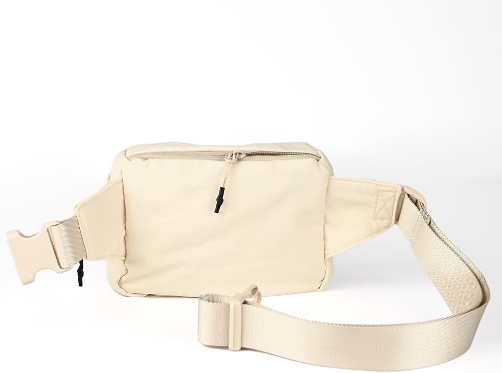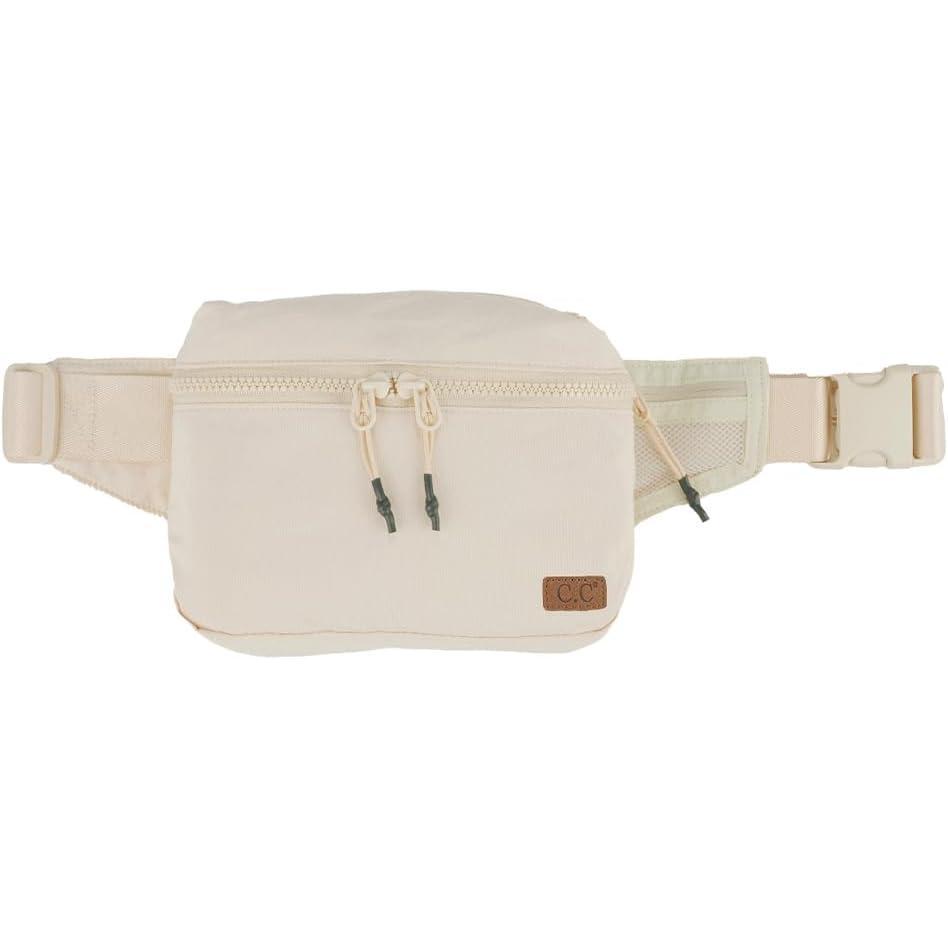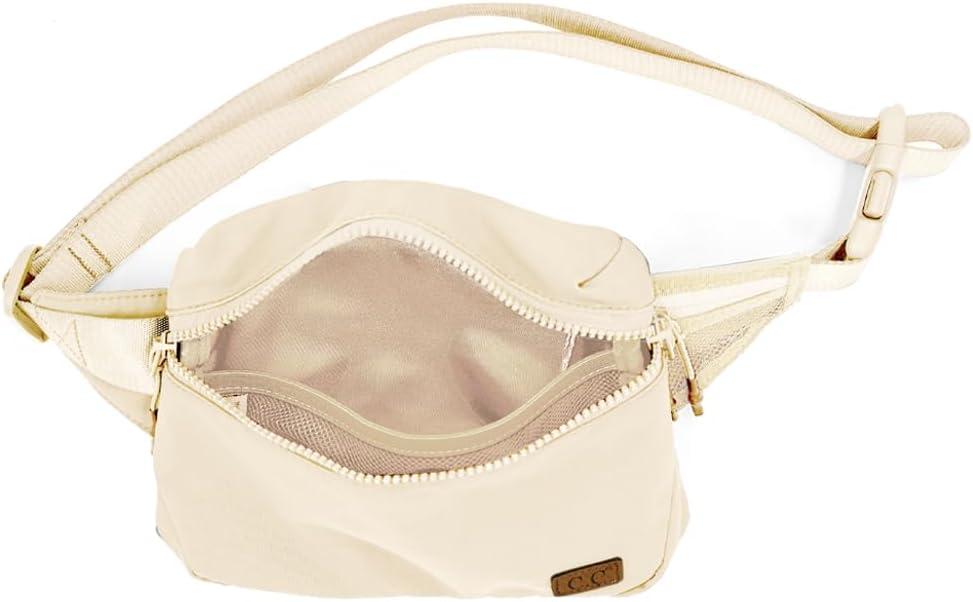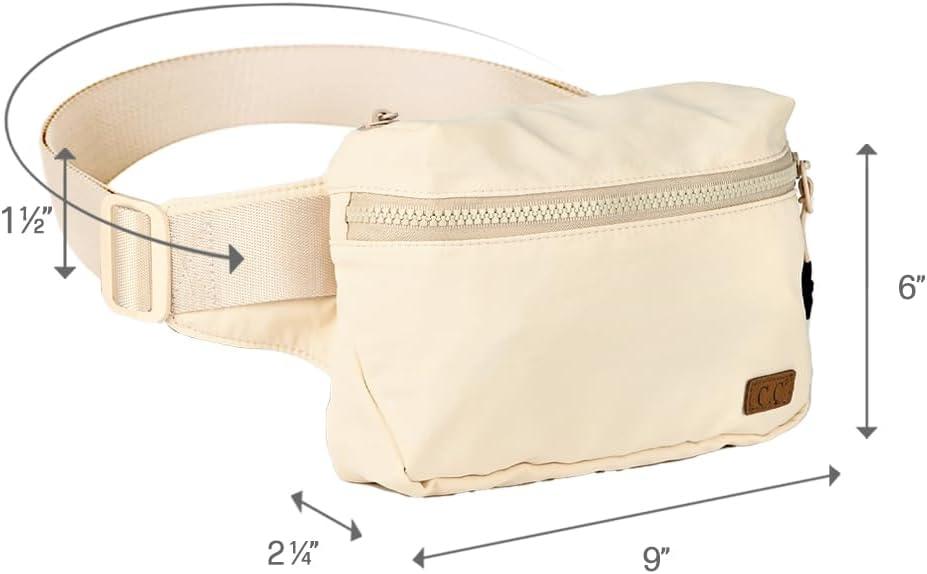 C.C Zipper Fanny Pack For Women Unisex - Daily Waist Crossbody Belt bag With Adjustable Strap (Burgundy)(Beige)