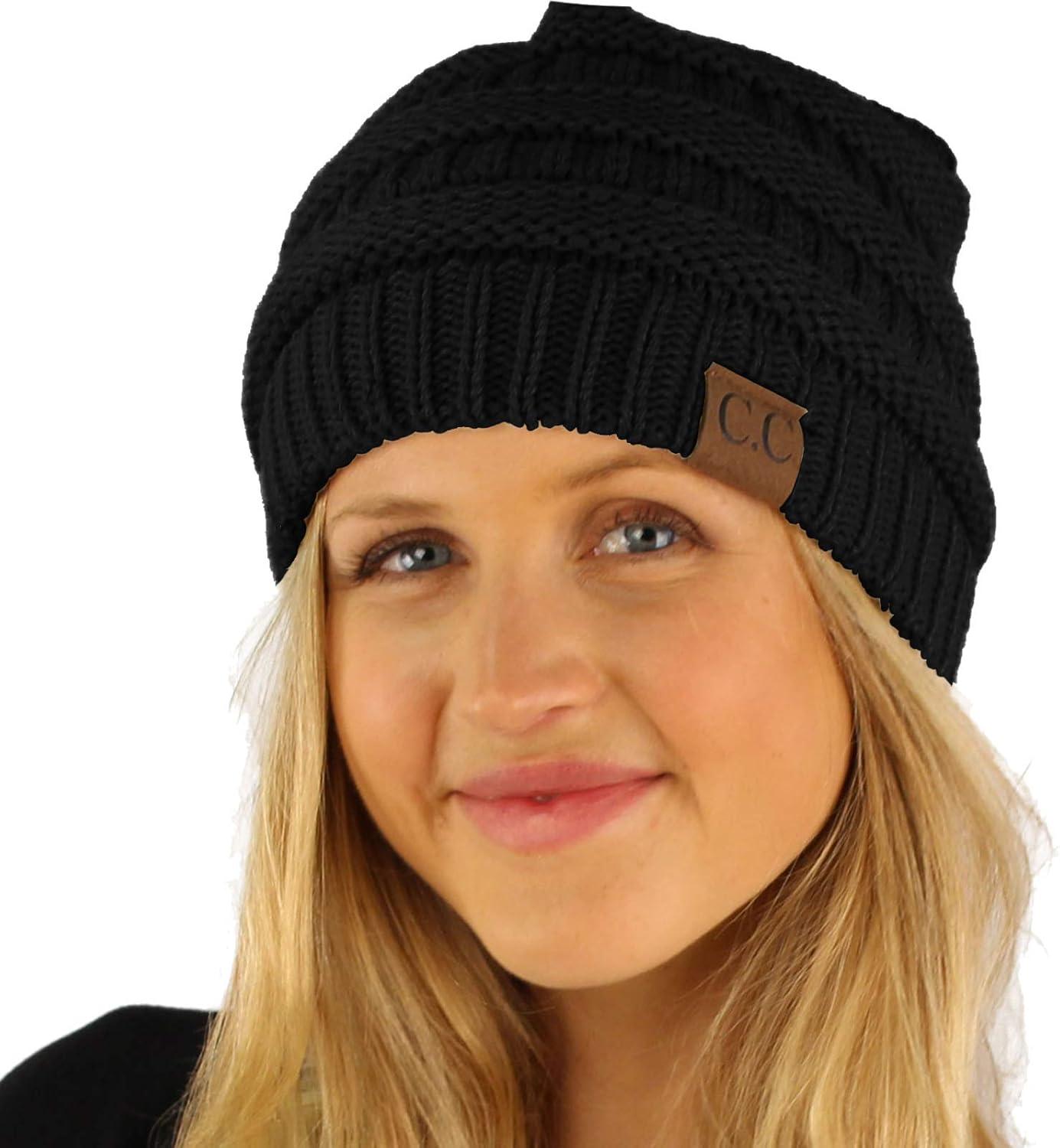 imageCC Classic Winter Fall Trendy Chunky Stretchy Cable Knit Beanie HatSolid Black
