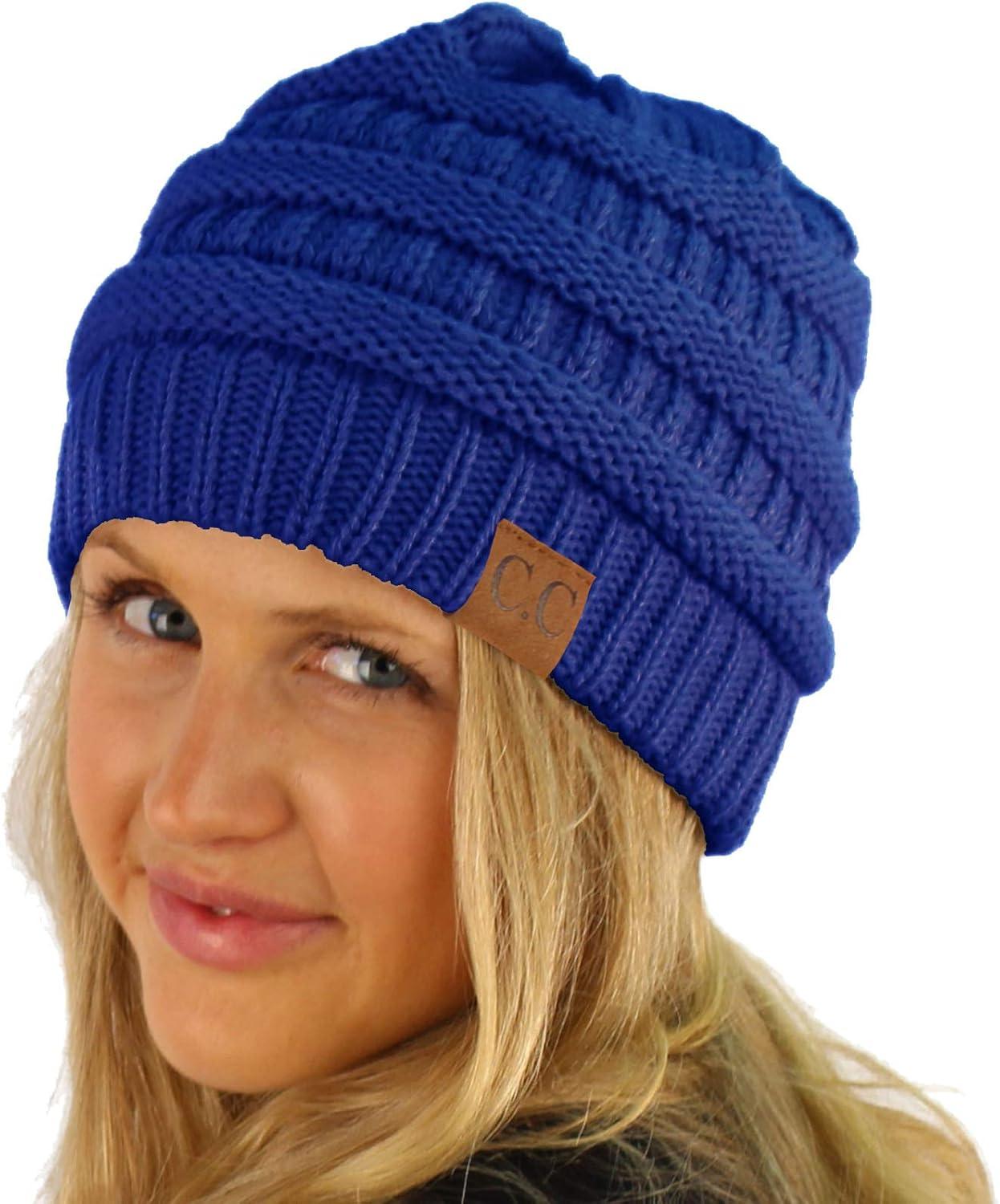 CC Classic Winter Fall Trendy Chunky Stretchy Cable Knit Beanie Hat(Solid Royal Blue)