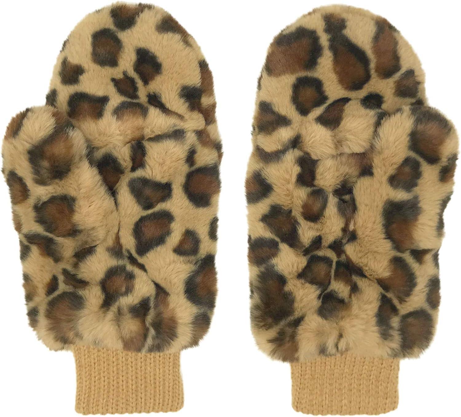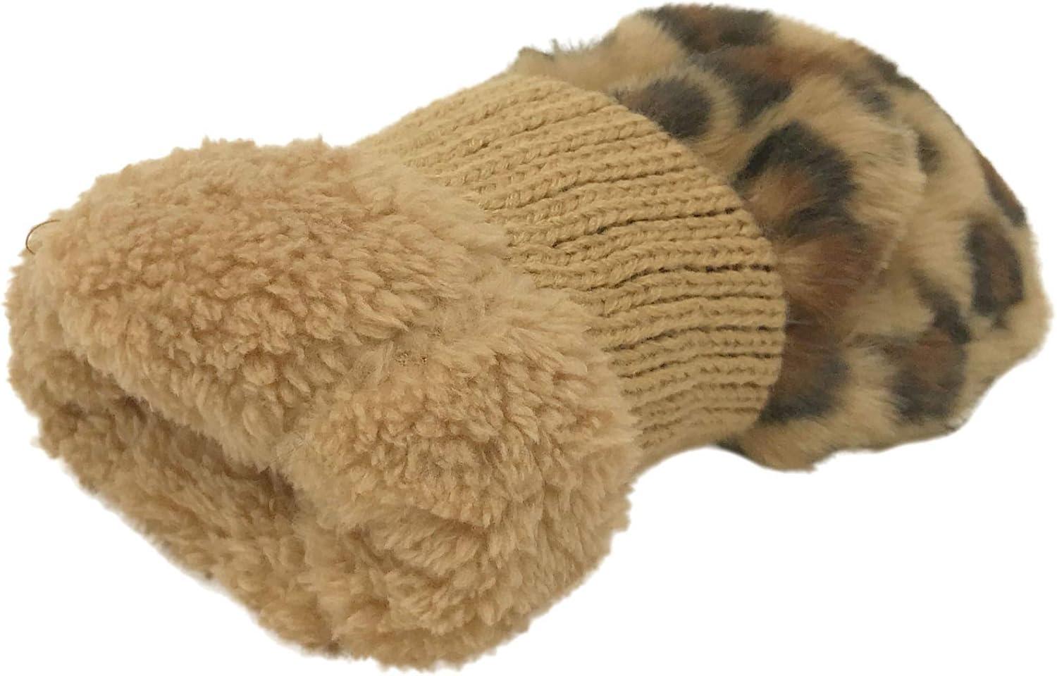 CC Soft Faux Fur Fuzzy Lined Flip Up Down Top Fingerless Mitten Gloves (Leopard Latte)