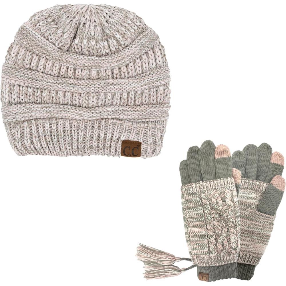 Unisex Soft Stretch Cable Knit Beanie and Anti-Slip Touchscreen Gloves 2 Pc Set(6242 Taupe)