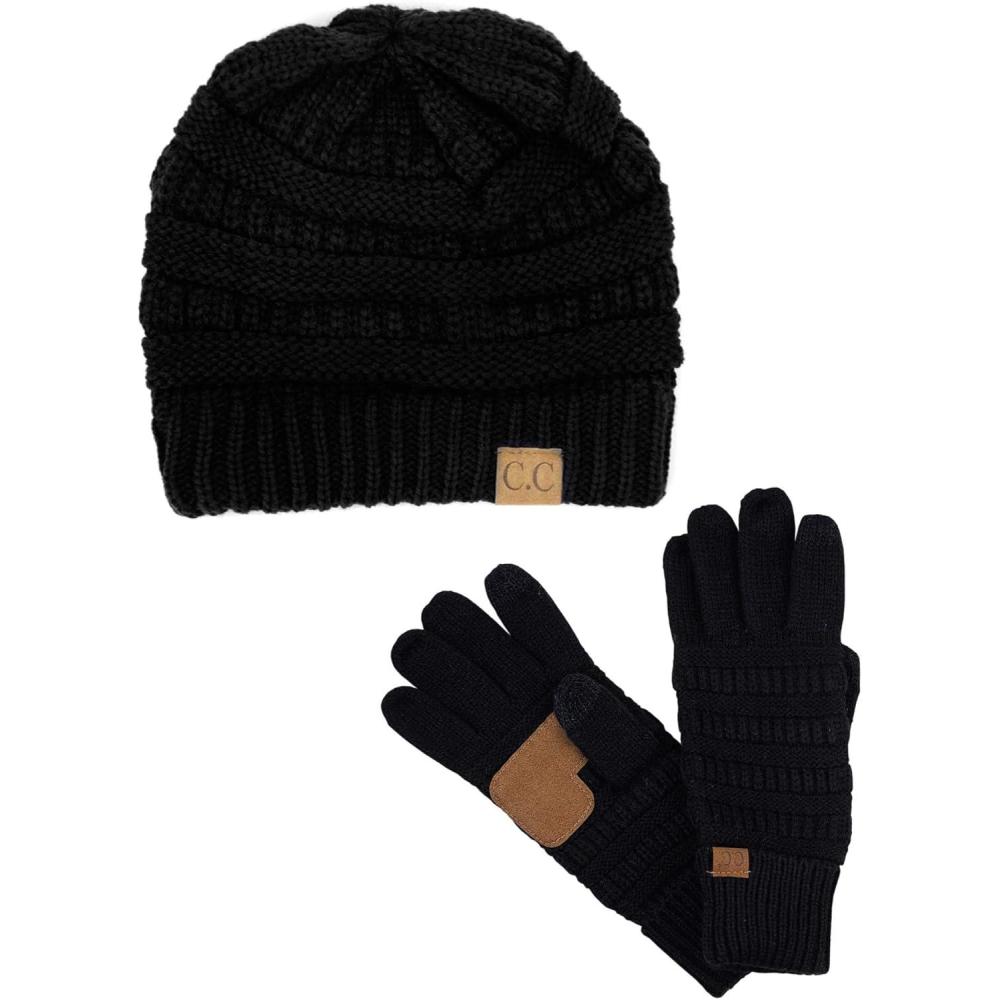 imageUnisex Soft Stretch Cable Knit Beanie and AntiSlip Touchscreen Gloves 2 Pc SetBlack Metallic