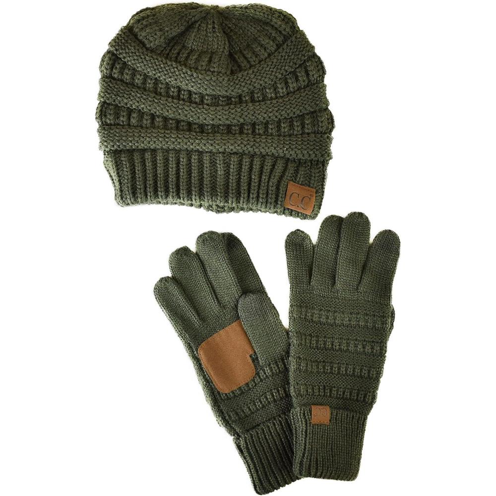 imageUnisex Soft Stretch Cable Knit Beanie and AntiSlip Touchscreen Gloves 2 Pc SetMoss