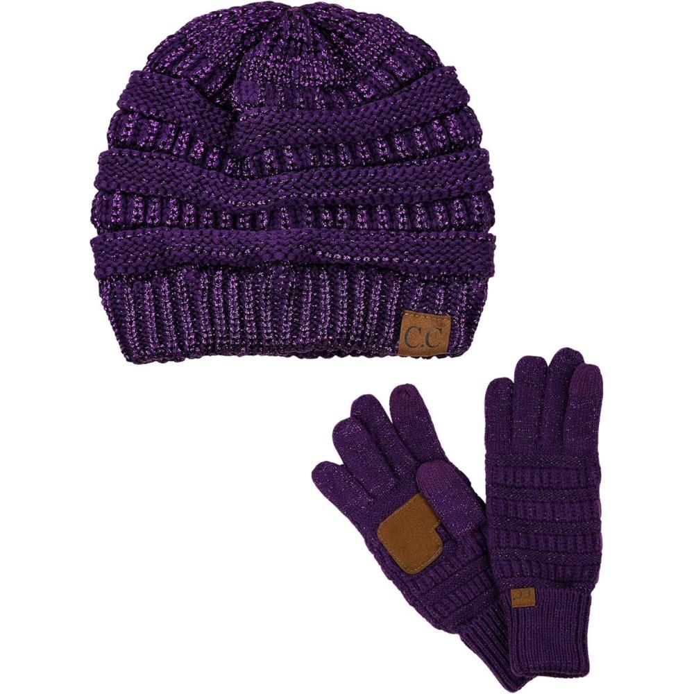 imageUnisex Soft Stretch Cable Knit Beanie and AntiSlip Touchscreen Gloves 2 Pc SetPurple Metallic