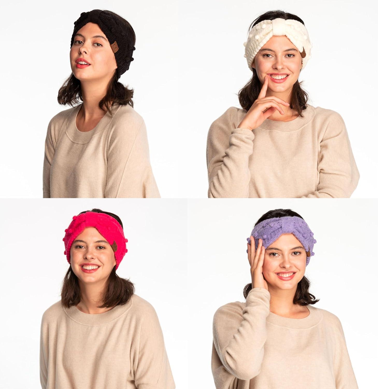 Winter CC Confetti Warm Fuzzy Fleece Lined Thick Knit Headband Headwrap Hat Cap(2ply Handmade Bobble Black)