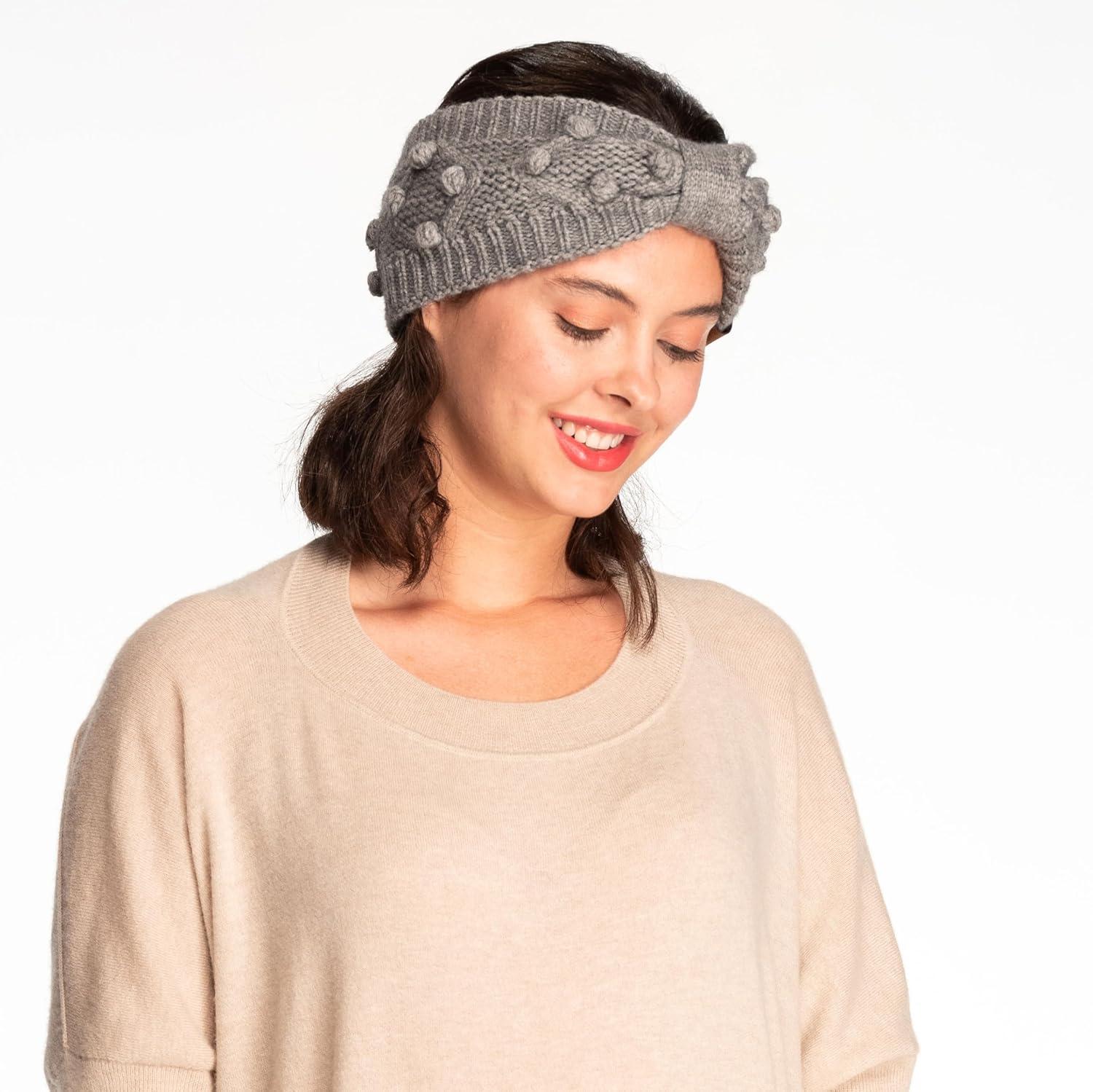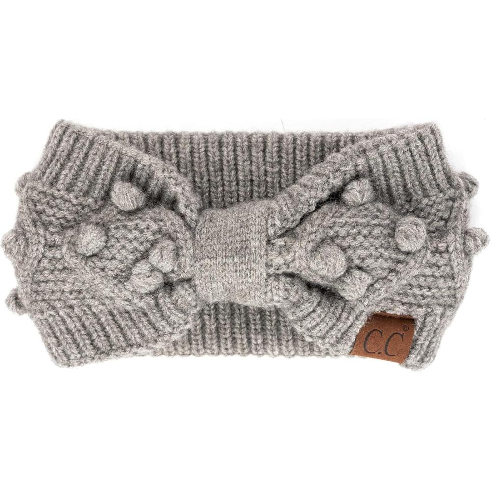 Winter CC Confetti Warm Fuzzy Fleece Lined Thick Knit Headband Headwrap Hat Cap(2ply Handmade Bobble Gray Mix)
