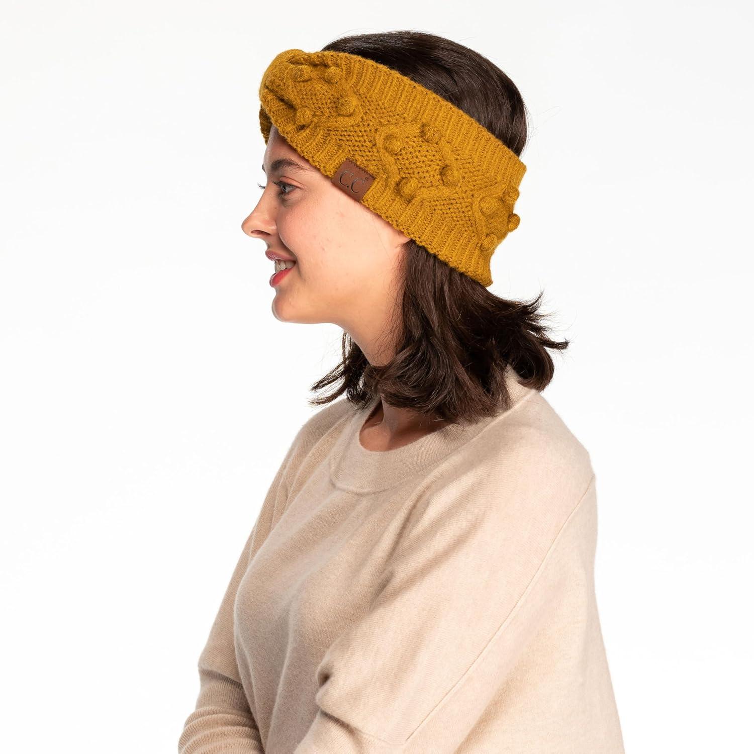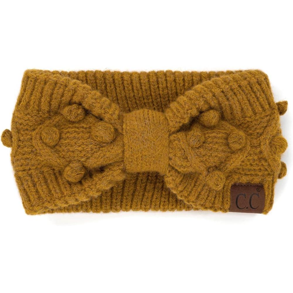 Winter CC Confetti Warm Fuzzy Fleece Lined Thick Knit Headband Headwrap Hat Cap(2ply Handmade Bobble Mustard Mix)