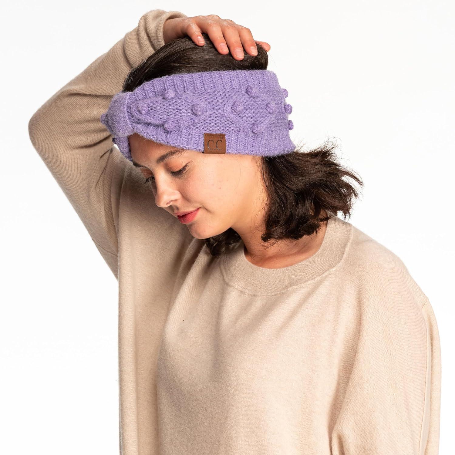 Winter CC Confetti Warm Fuzzy Fleece Lined Thick Knit Headband Headwrap Hat Cap(2ply Handmade Bobble Periwinkle Mix)