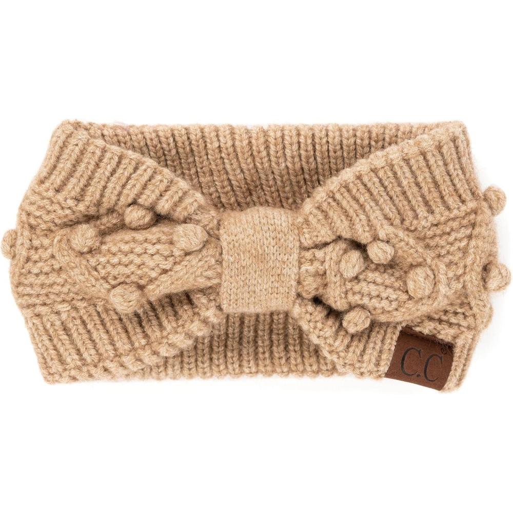 Winter CC Confetti Warm Fuzzy Fleece Lined Thick Knit Headband Headwrap Hat Cap(2ply Handmade Bobble Taupe Mix)
