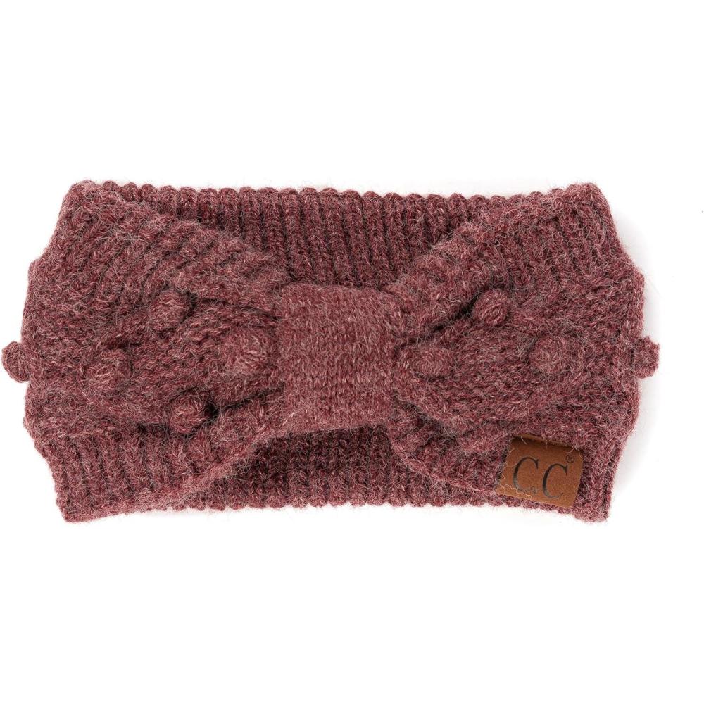 Winter CC Confetti Warm Fuzzy Fleece Lined Thick Knit Headband Headwrap Hat Cap(2ply Handmade Bobble Wine Mix)