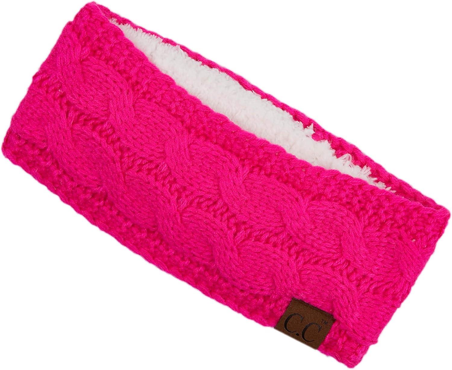 Winter CC Confetti Warm Fuzzy Fleece Lined Thick Knit Headband Headwrap Hat Cap(Neon Hot Pink)