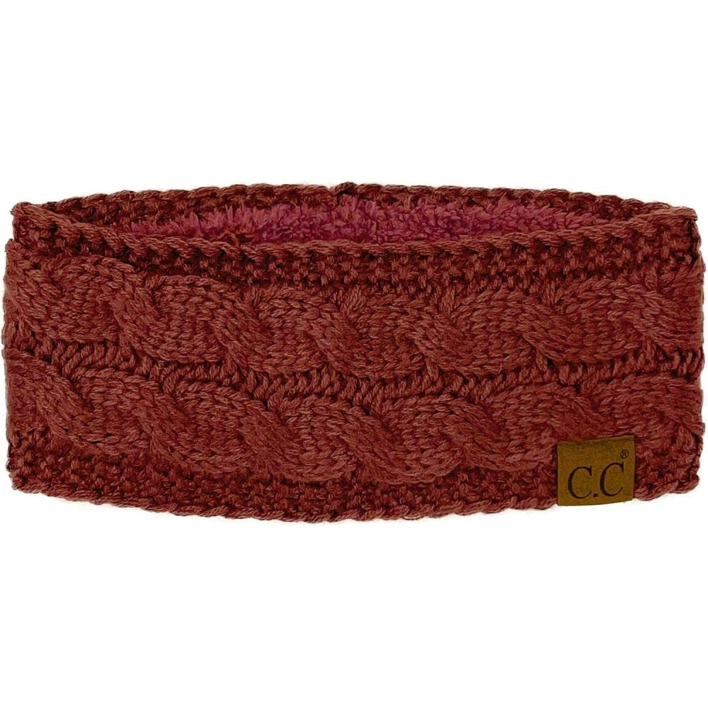 Winter CC Confetti Warm Fuzzy Fleece Lined Thick Knit Headband Headwrap Hat Cap(Solid Coco Berry)